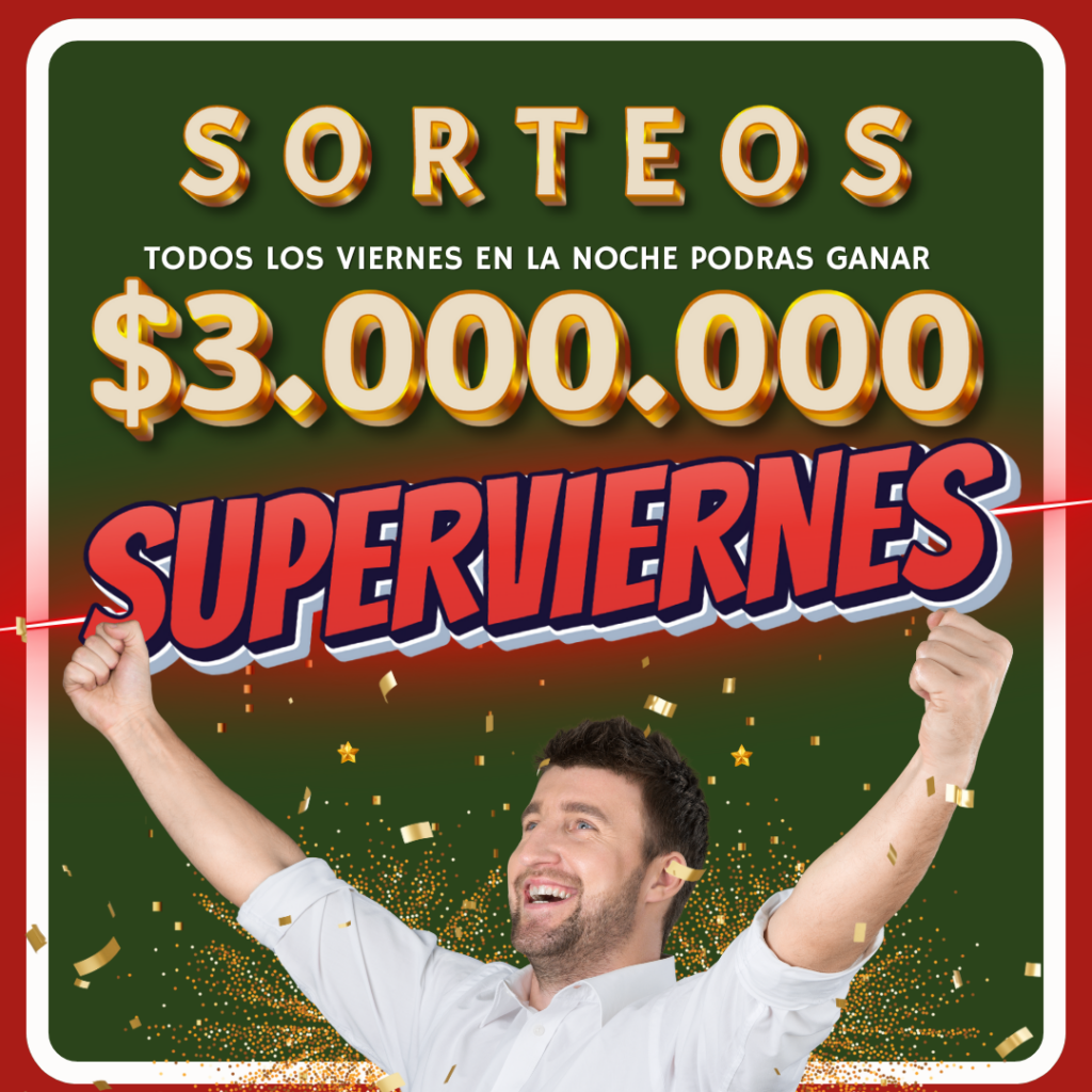 Todos los Viernes en la noche podrás ganar hasta $3.000.0000, con el Sorteo del Super viernes.